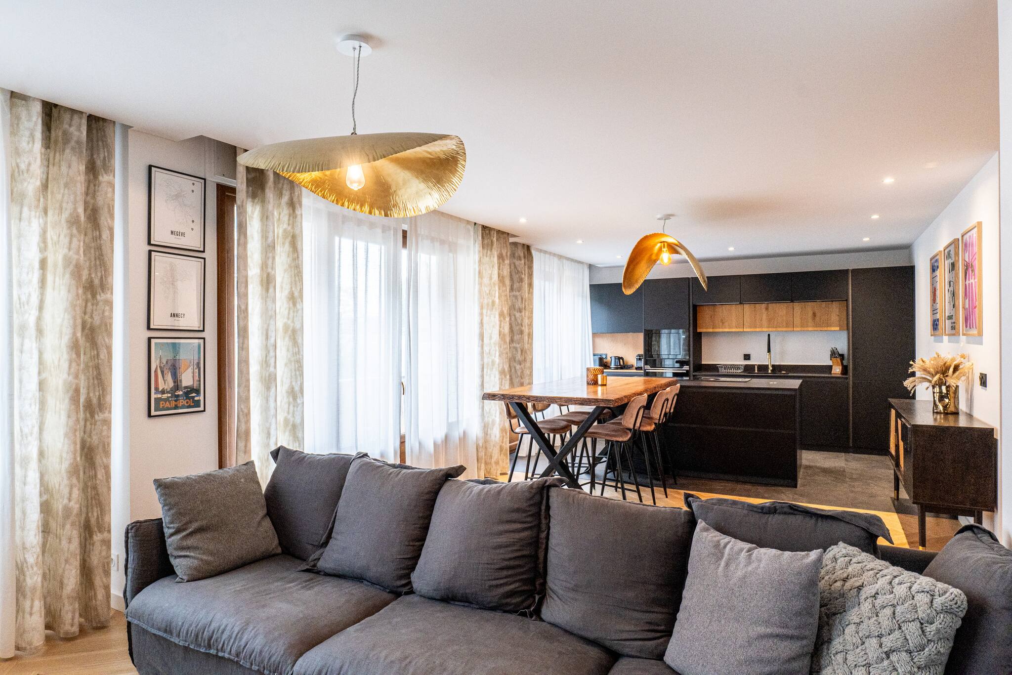 🤩 Découvrez l'AVA'necy, un appartement de caractère où le raffinement s’invite à chaque détail. Récemment rénové, cet appartement vous séduira par ses matériaux nobles ✨ : parquet chaleureux, carrelage contemporain, lustres, cadres, et une cuisine entièrement équipée.