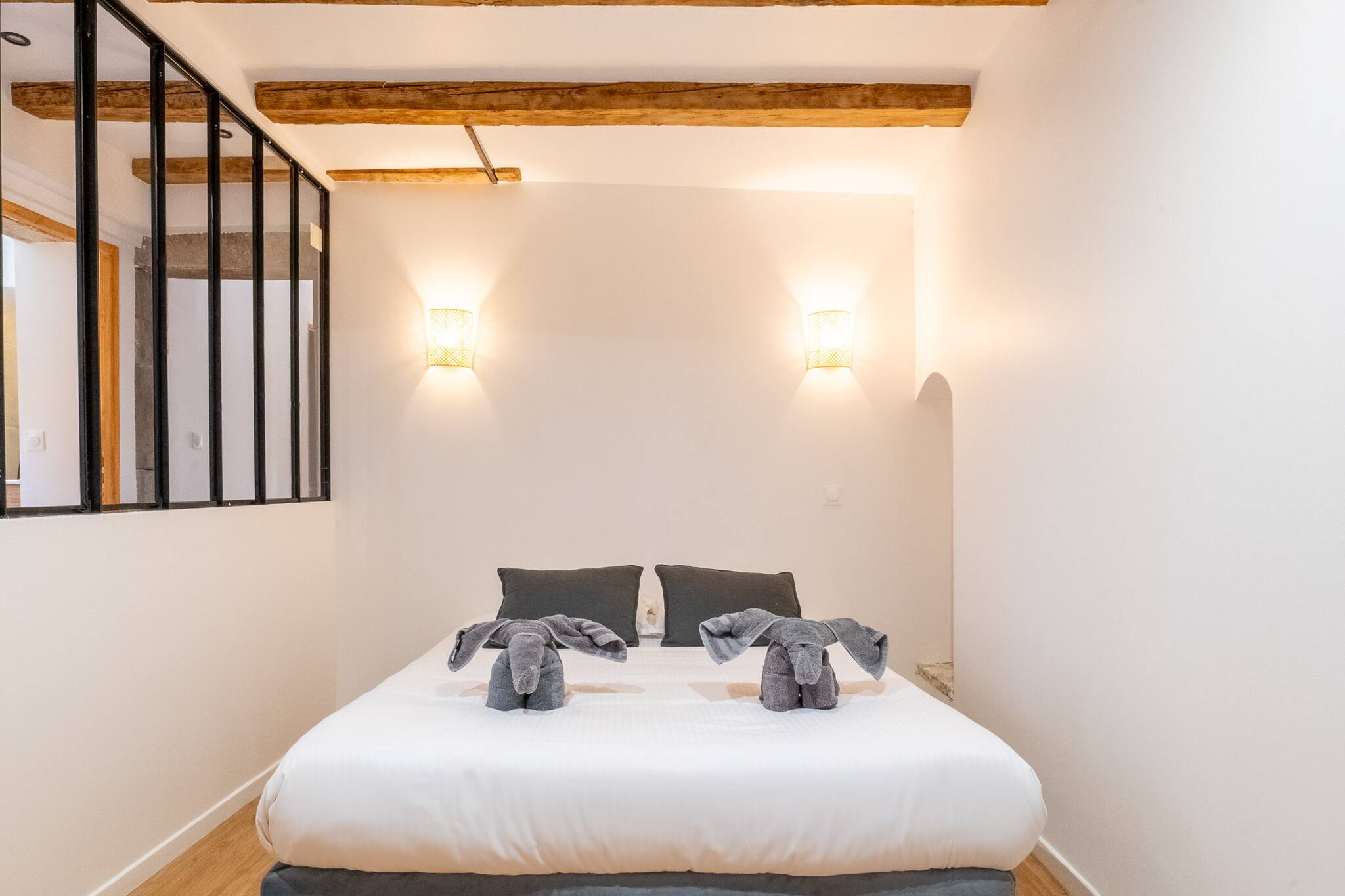 🛏️Les deux chambres disposent chacune d’un lit 160 cm 🛏️ et d’une verrière qui apporte lumière et caractère à l’espace, offrant un cadre élégant et intime pour des nuits paisibles.