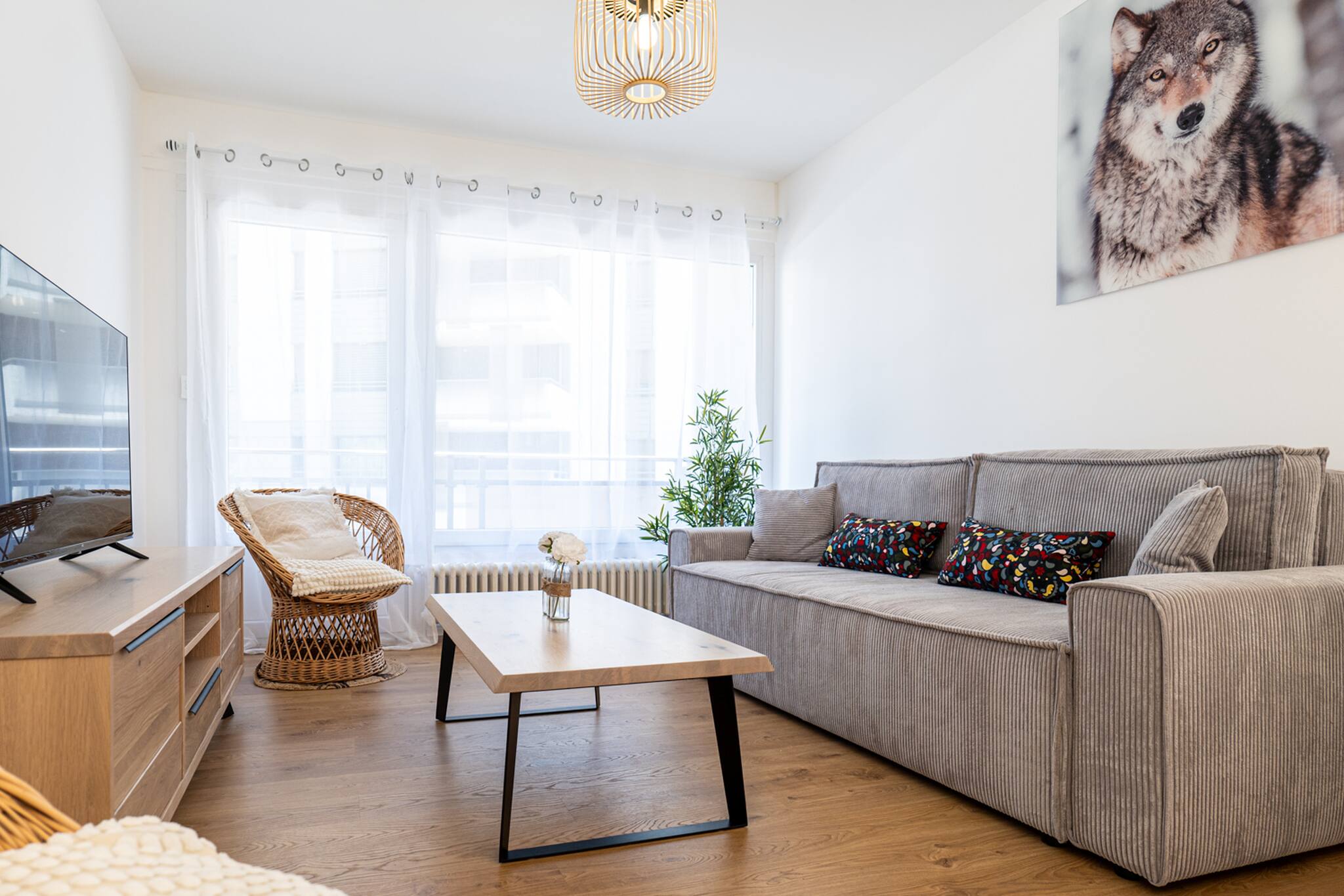 🛋️ Un salon cosy avec canapé, TV connectée 📺 et connexion Internet rapide 🌐