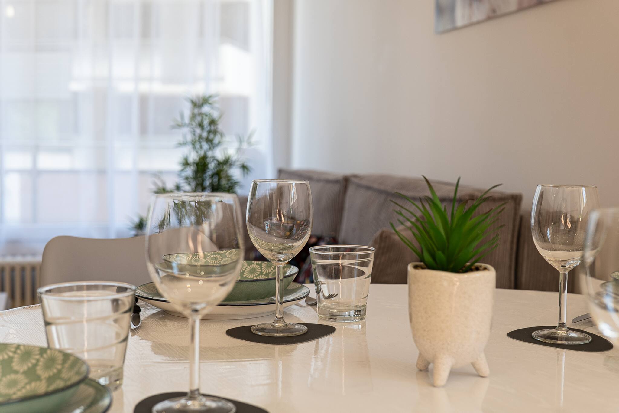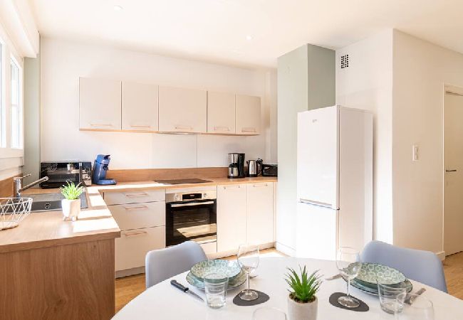 🍽️ Cuisine ouverte sur le salon. Equipée d’un réfrigérateur et congélateur, four, micro onde, lave vaisselle, plaques de cuisson, grille pain, cafetière Nespresso, bouilloire, table à manger pour 4 personnes)