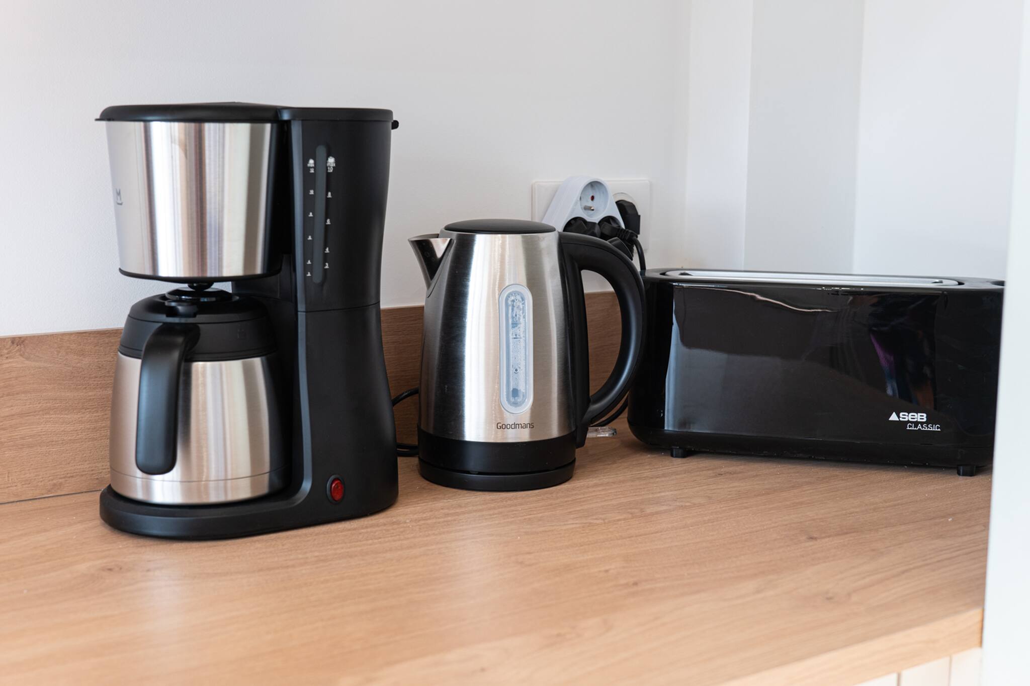 🍽️ Cuisine ouverte sur le salon. Equipée d’un réfrigérateur et congélateur, four, micro onde, lave vaisselle, plaques de cuisson, grille pain, cafetière Senseo, bouilloire, table à manger pour 4 personnes)