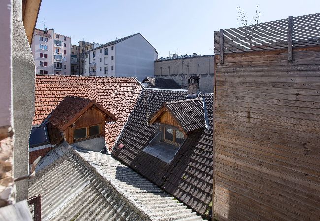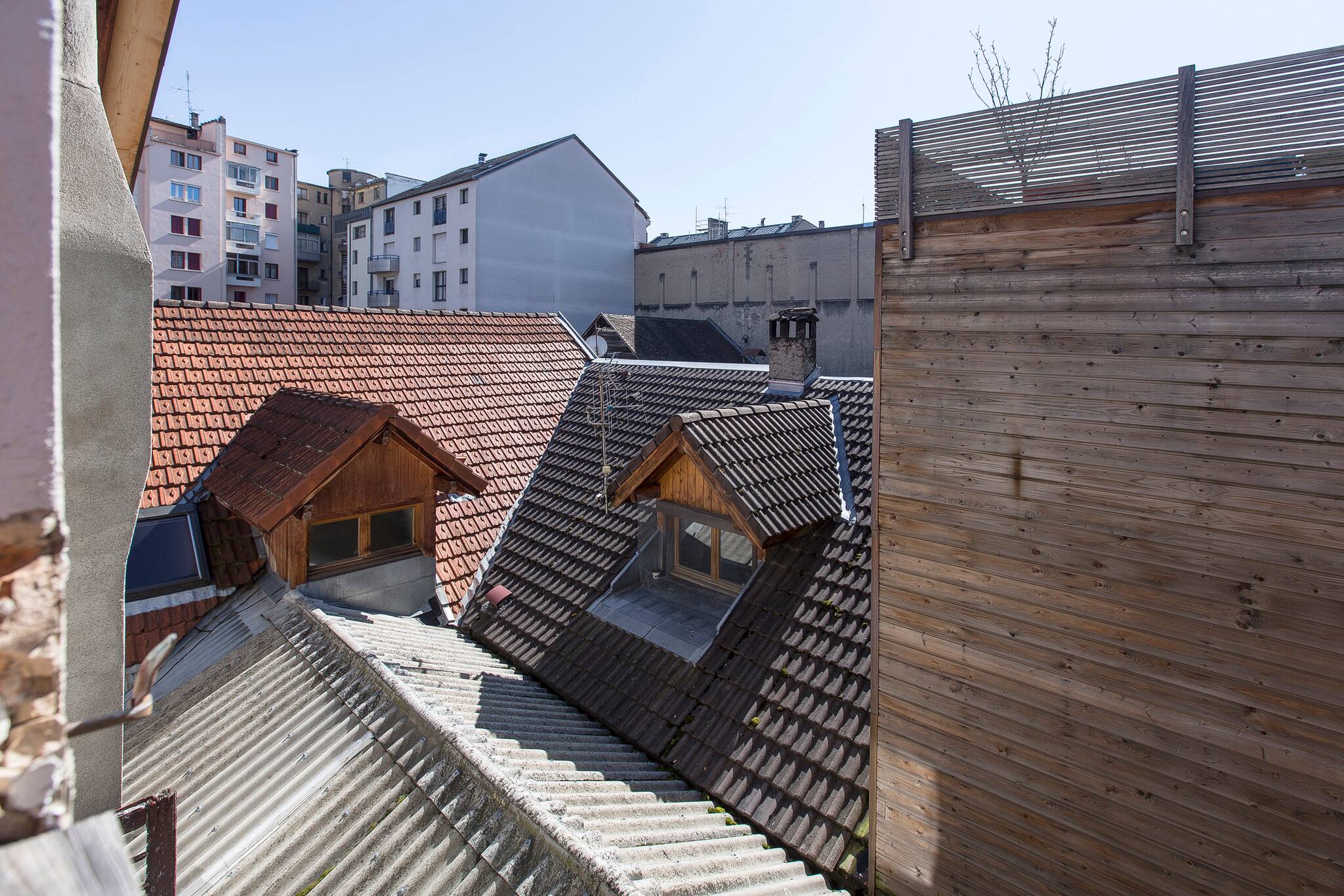 Une terrasse privative avec vue imprenable sur les toits typiques d’Annecy et une cour intérieure paisible. Un petit coin de ciel pour profiter d’un café au soleil ou d’un verre au crépuscule.