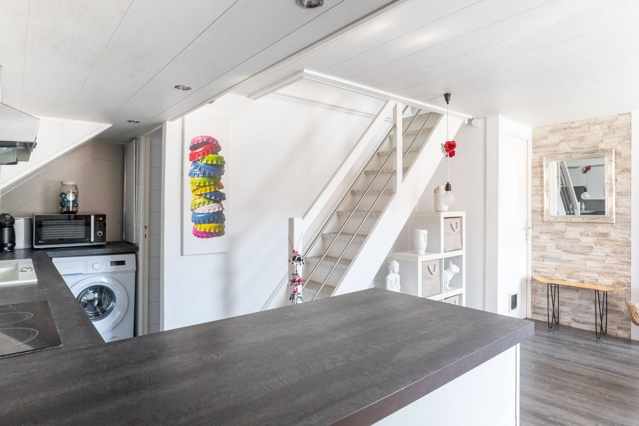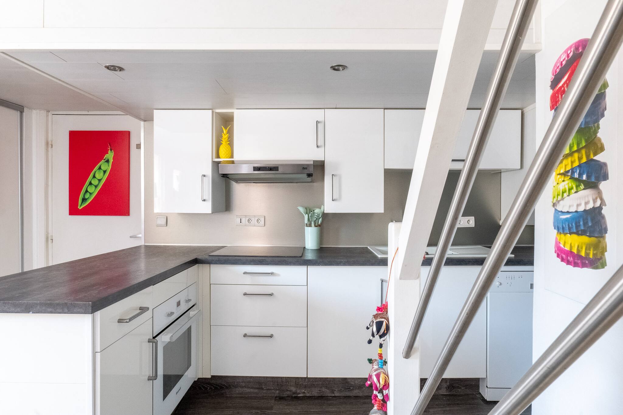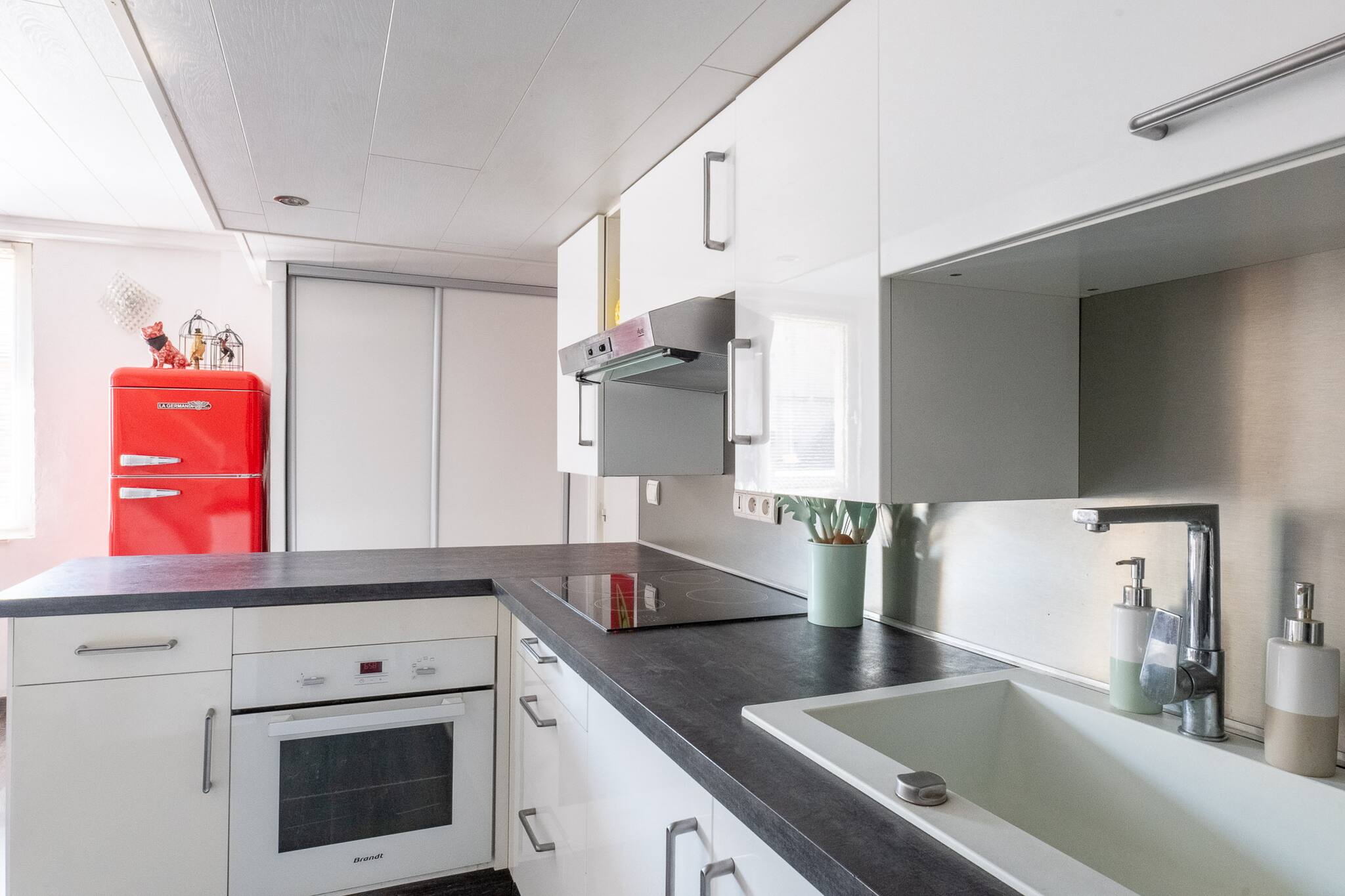 🍷 Cuisine ouverte sur le salon, esprit bar convivial, parfaite pour partager un apéritif après le marché.