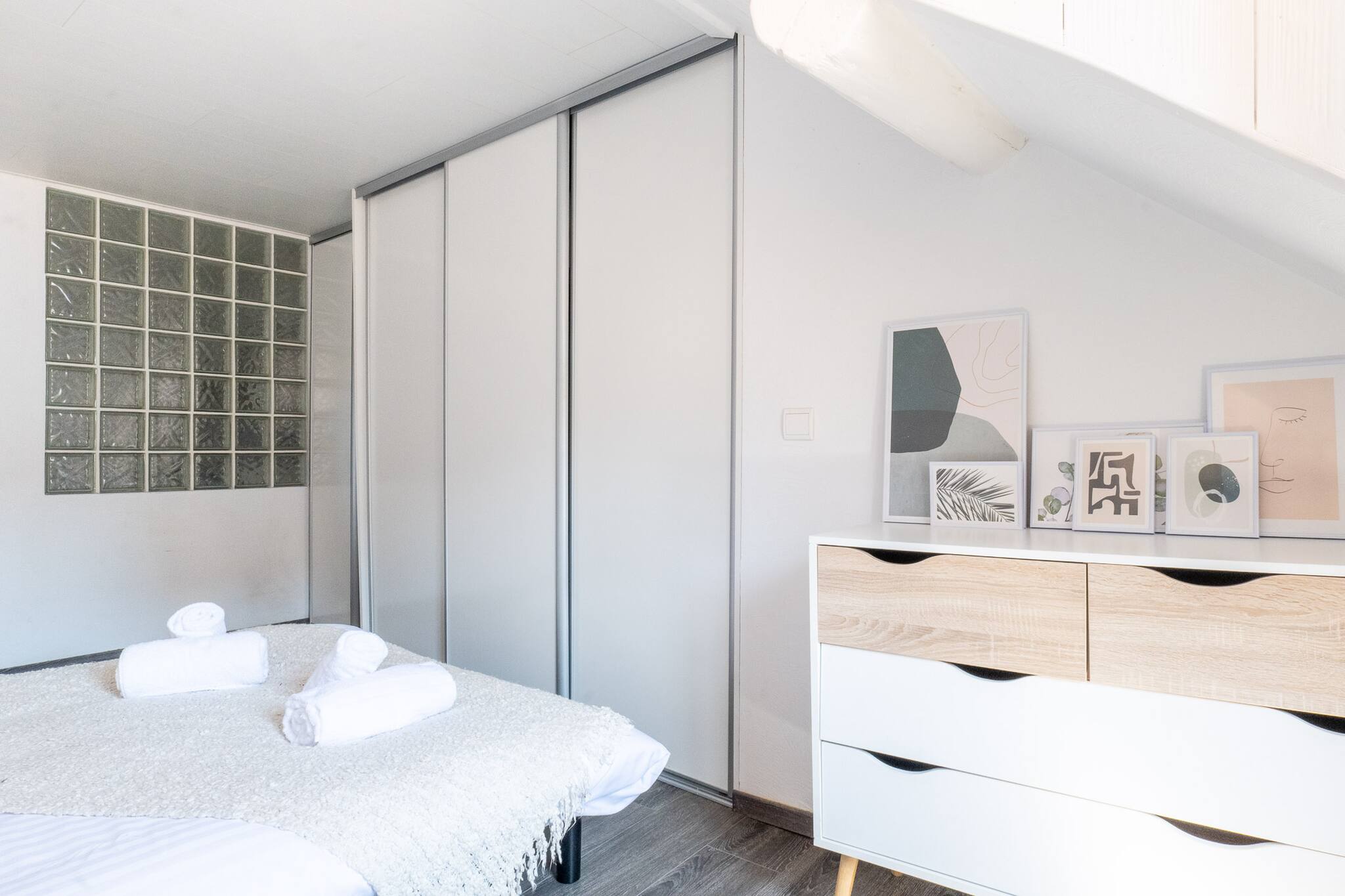 🛏️ La première chambre spacieuse est équipée d'un grand lit queen size (160x200cm), et d’un grand dressing.