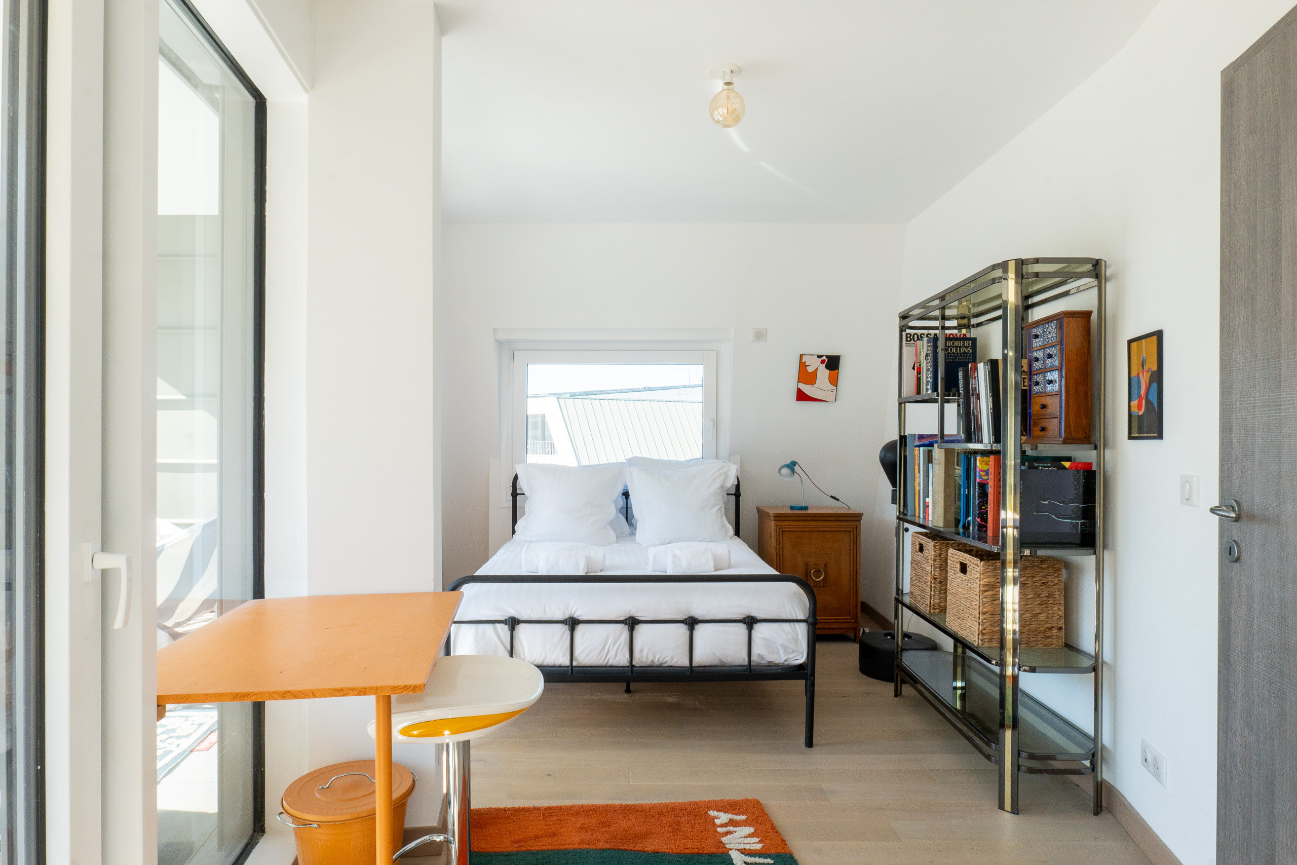 🛏️ la deuxième chambre est équipée d'un lit double, espace bureau idéal pour le télétravail, accès direct à la terrasse, rangements intégrés.