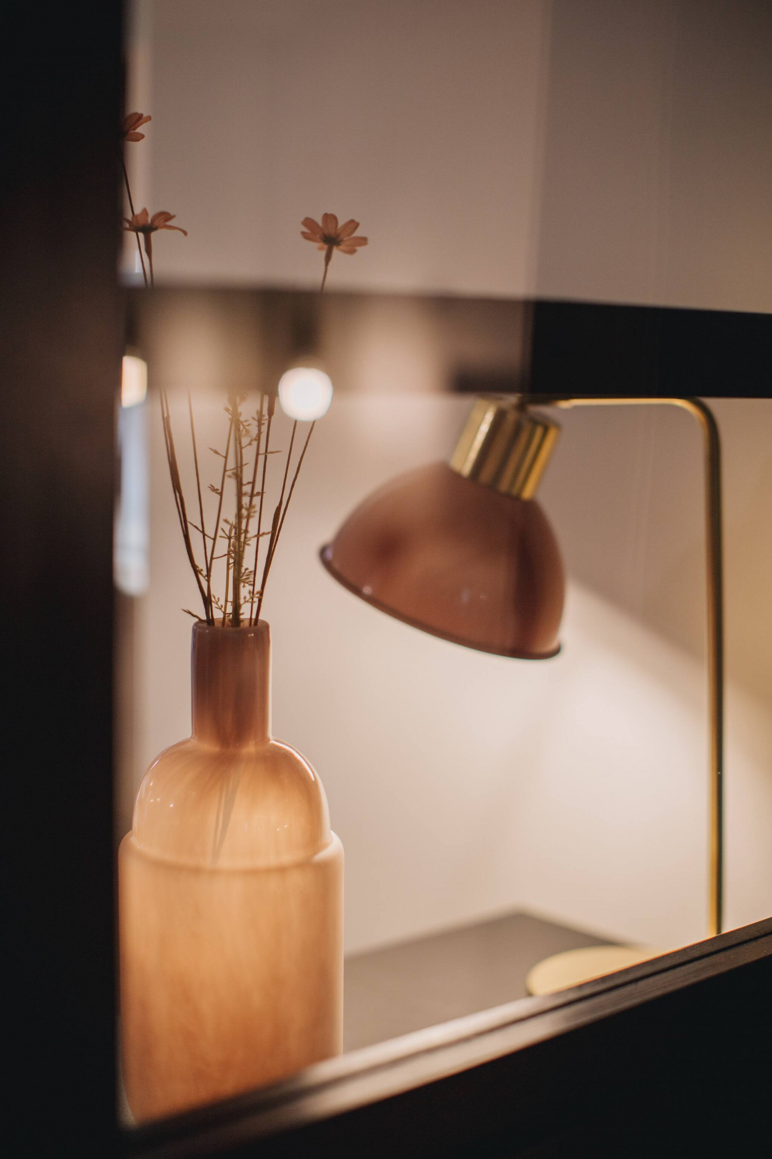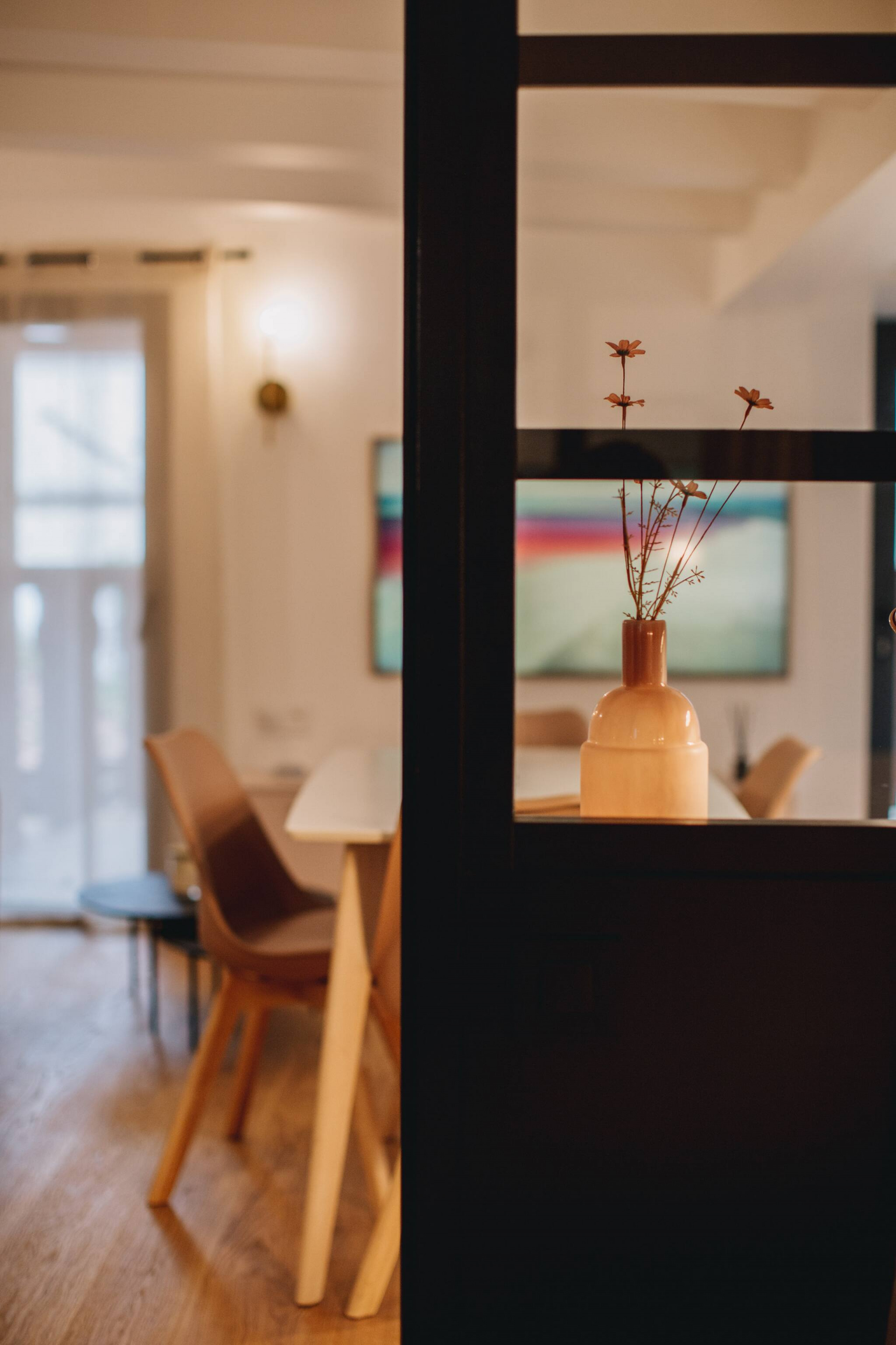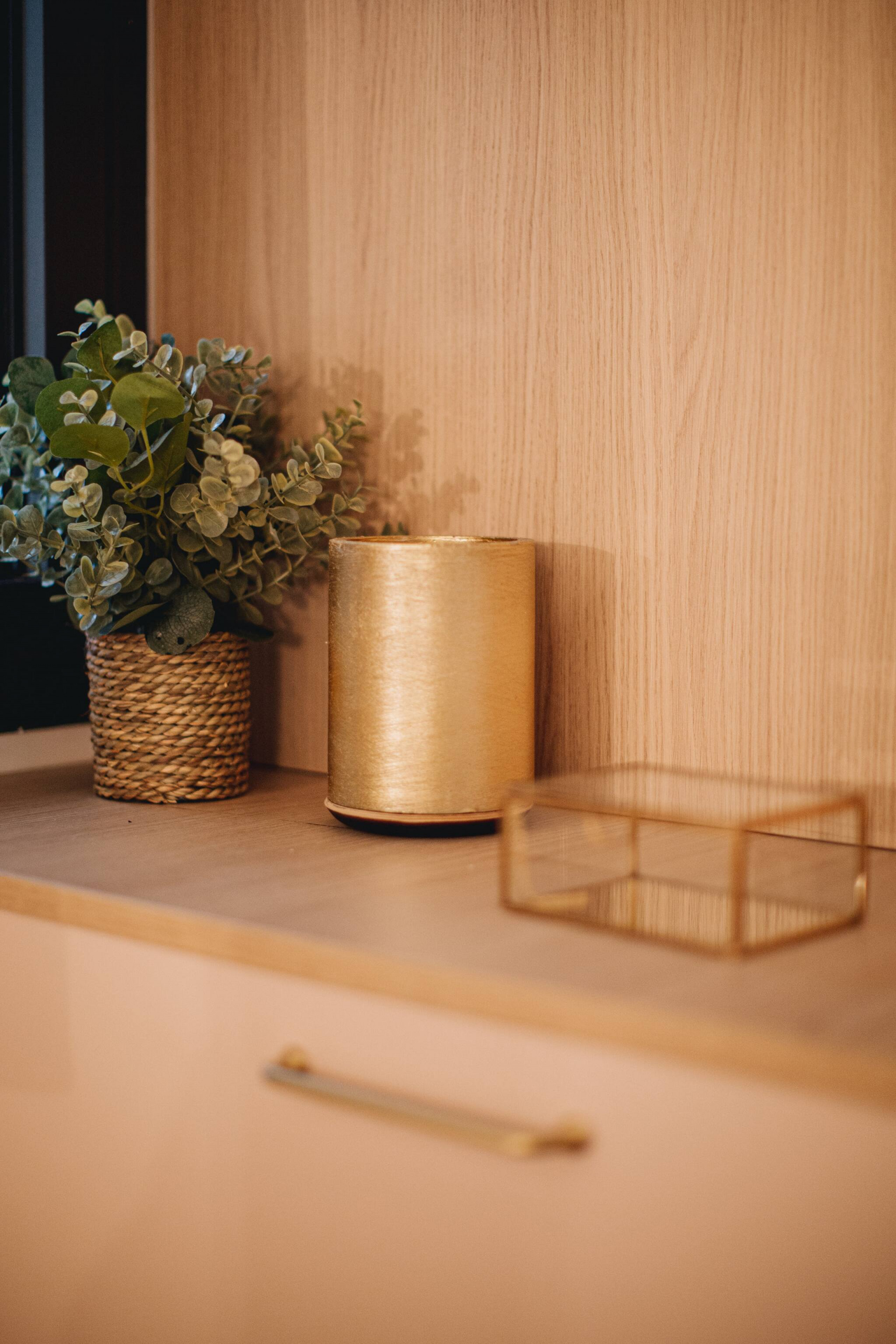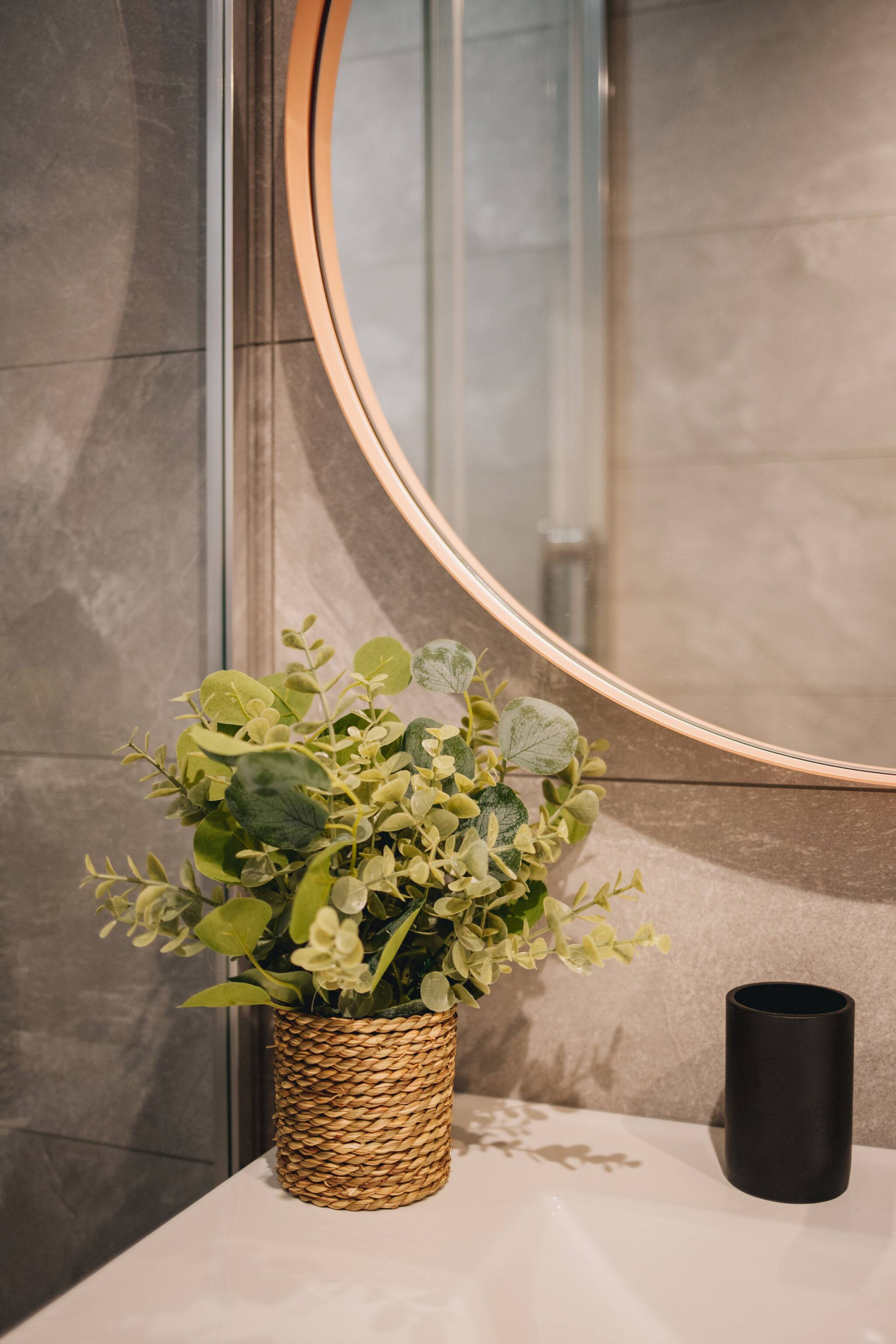 Ce charmant deux-pièces allie 🌿 élégance naturelle et 🪞 confort moderne : mobilier en bois clair, touches d’osier, feuillage de pampa et une atmosphère douce aux tons vert d’eau 💚