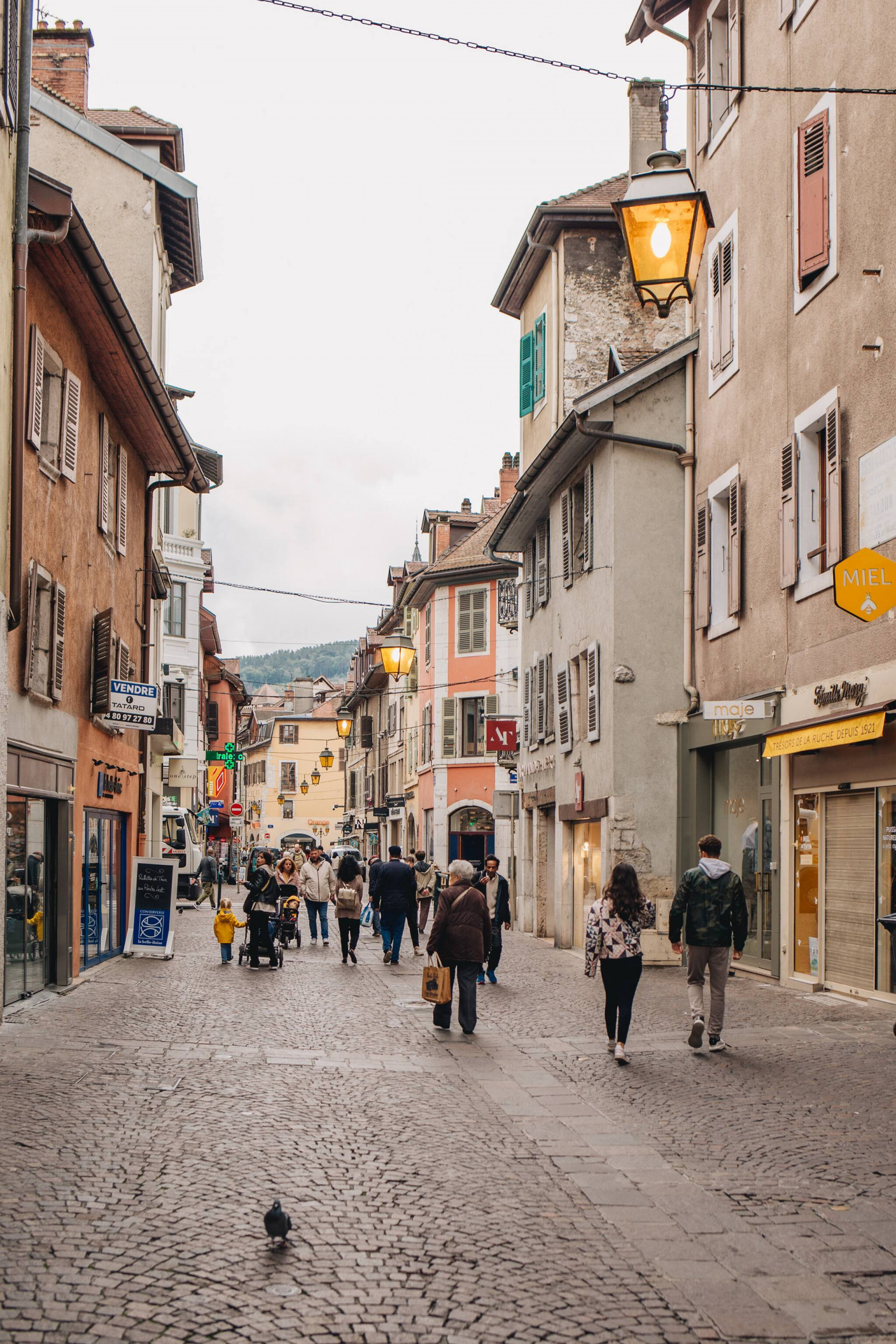 Rue piétonne animée et prisée d’Annecy. Commerces, restaurants, centre historique… tout est à proximité 😉