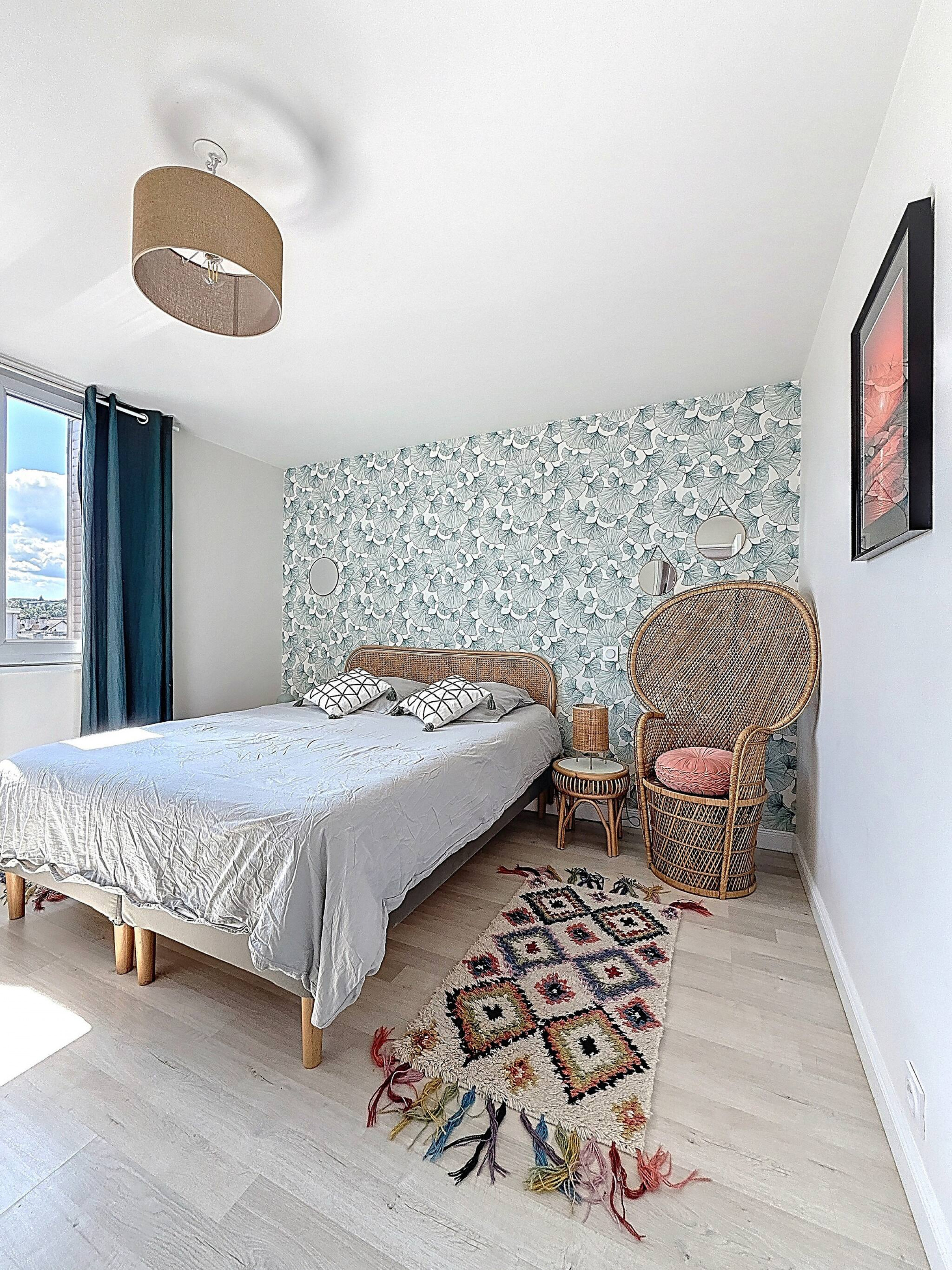 Situé au 7ᵉ étage avec ascenseur, cet appartement lumineux 🪟 offre une vue dégagée sur Annecy, avec en toile de fond 🏰 le château et les montagnes 🏔️.