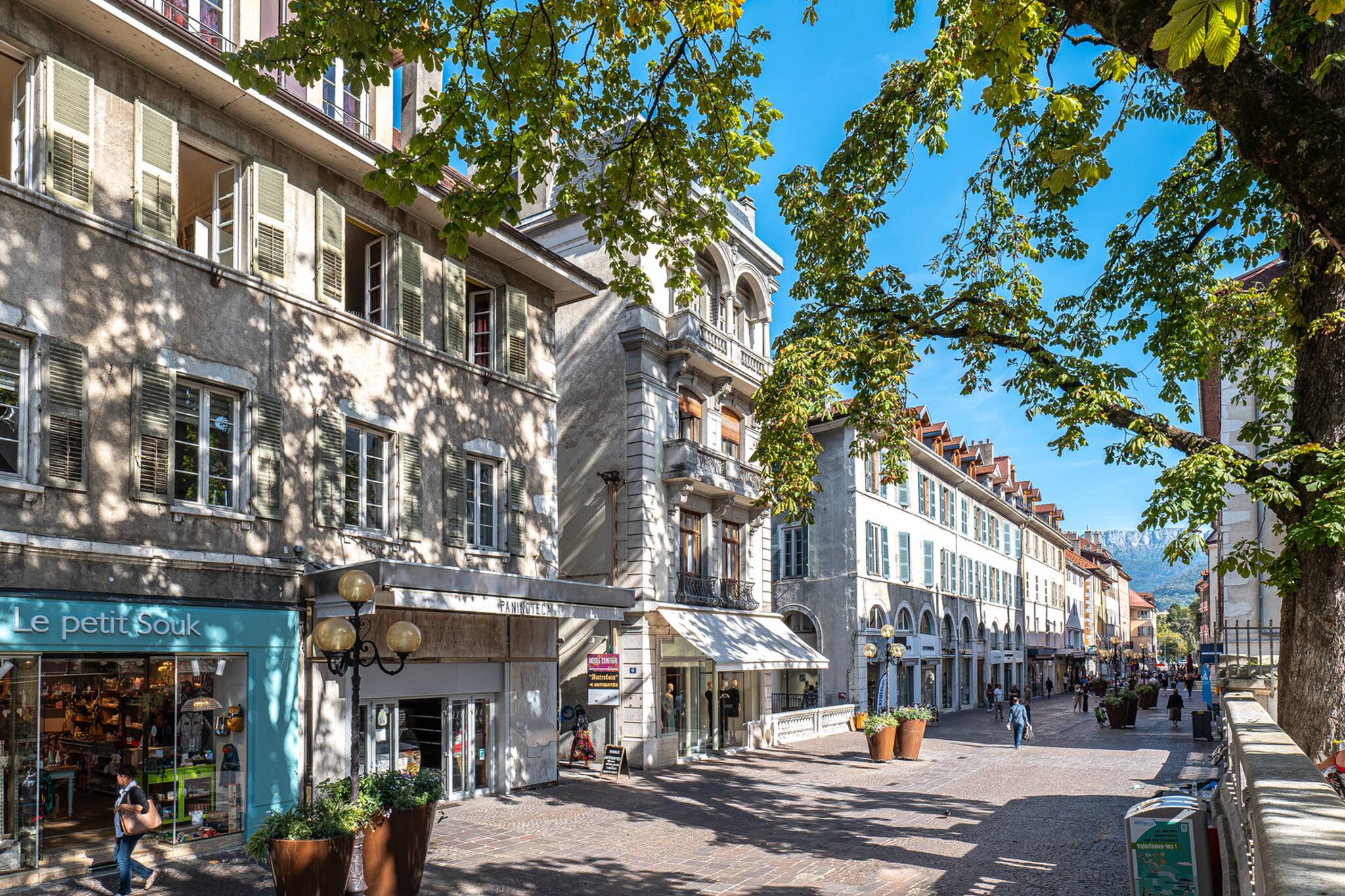 Rue piétonne d’Annecy. Commerces, restaurants, centre historique… tout est à proximité 😉