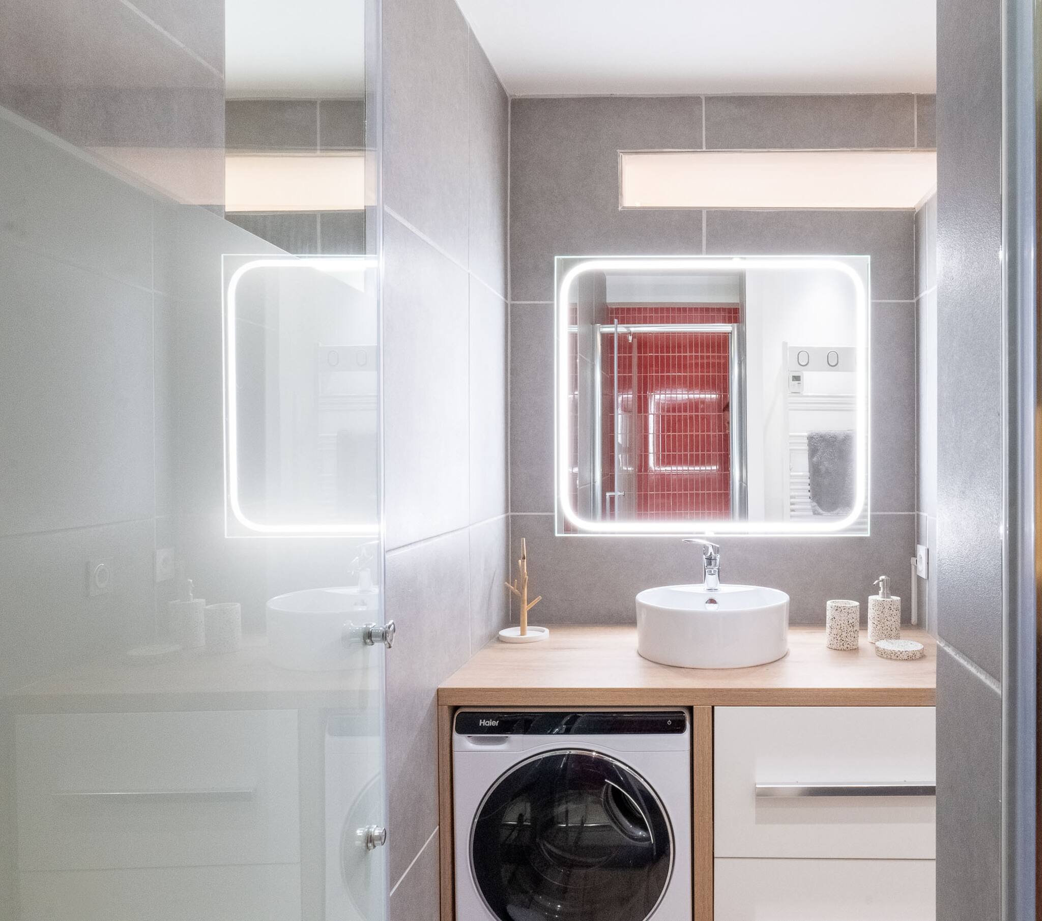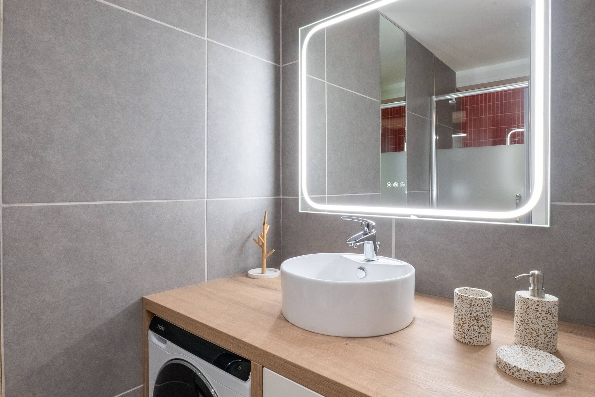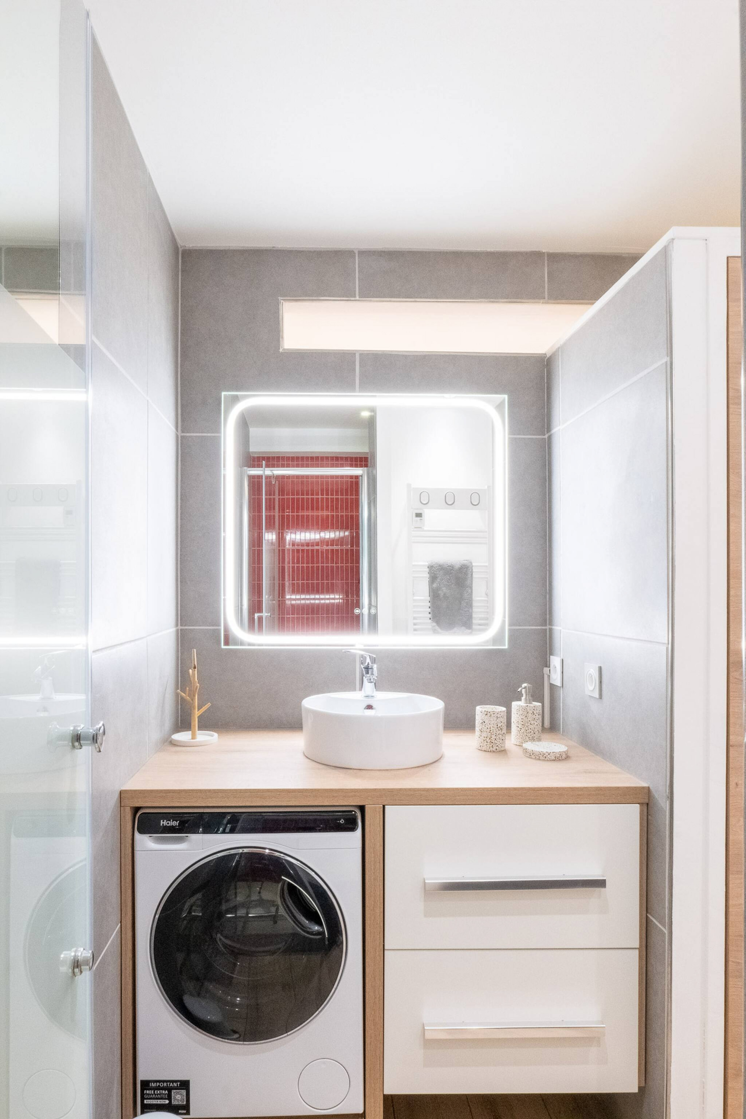 La salle de bain moderne 🚿 est équipée d'une grande douche et d'une machine à laver 🧺, un atout pratique pour un séjour prolongé. Les WC sont séparés, pour plus de confort au quotidien. Idéal pour ceux qui recherchent un séjour tout confort, que ce soit pour quelques jours ou plusieurs semaines 🧳.
