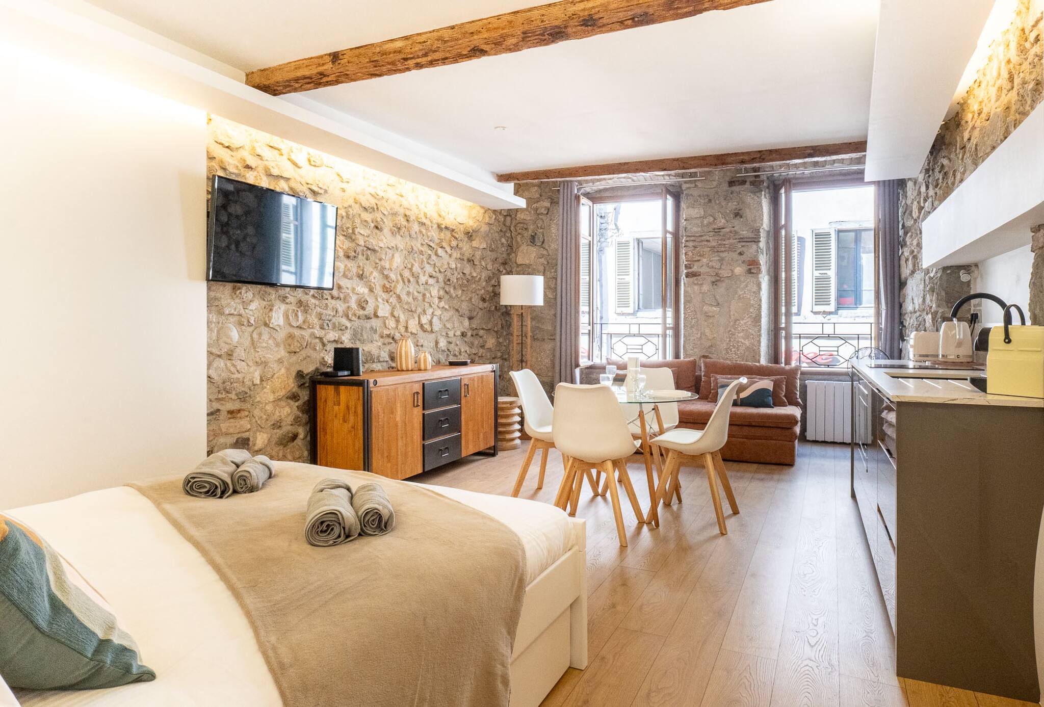 📍 Niché dans l'une des plus jolies rues pavées de la vieille ville, ce logement de charme 🏡 marie parfaitement le cachet de l'ancien au confort moderne ✨.