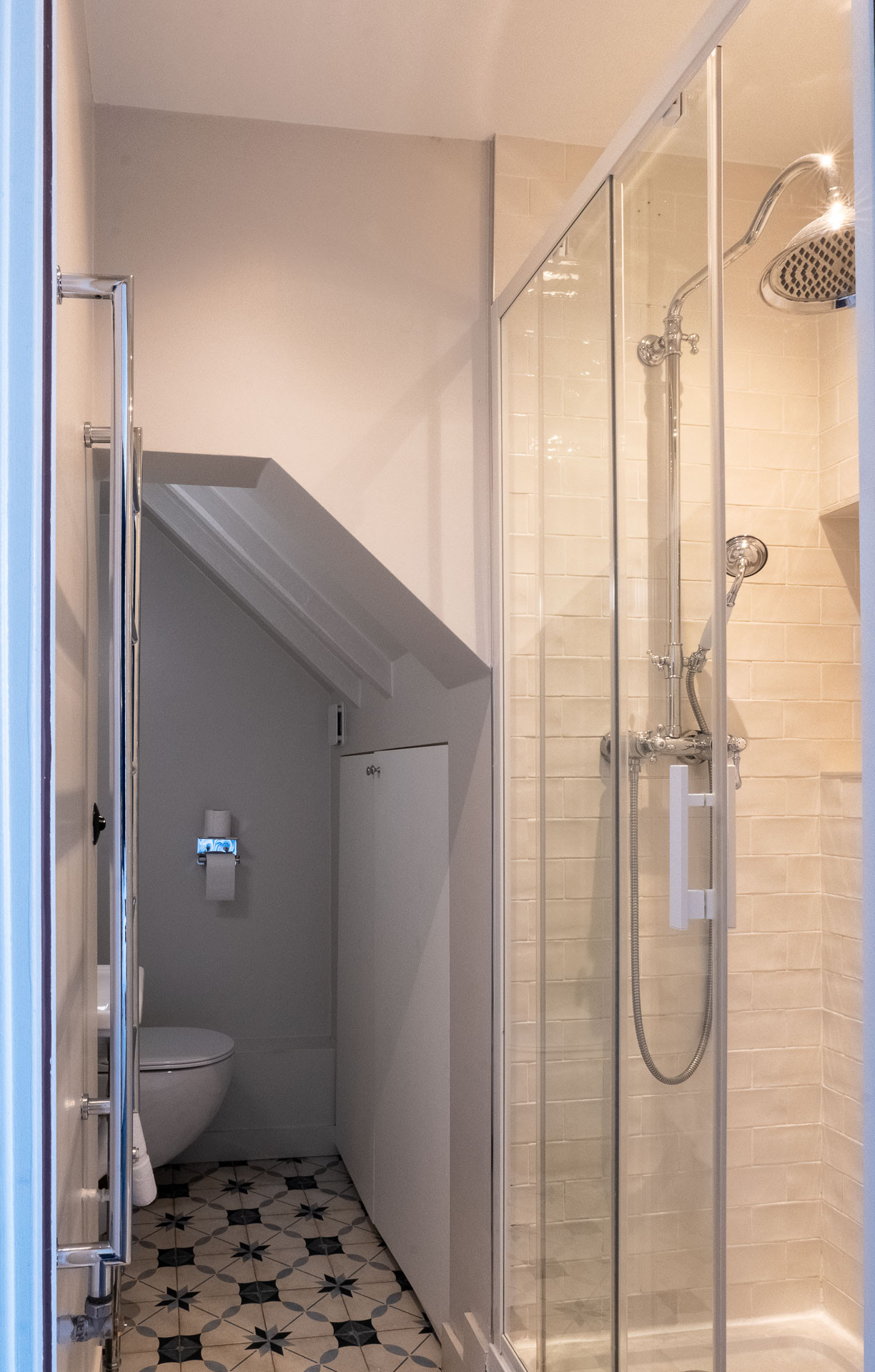 L’appartement se trouve au 1ᵉʳ étage d’un immeuble chargé d’histoire, accessible par de jolis escaliers en pierre d’époque 🪨.